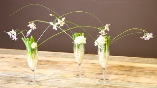 グラスの縁に沿わせて花を活けて、かわい...