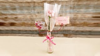 ラッピングされたカーネーションをひと工夫で可愛く飾るアレンジ