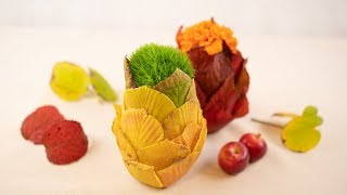 紅葉の葉っぱを使って一輪挿しのアレンジ...