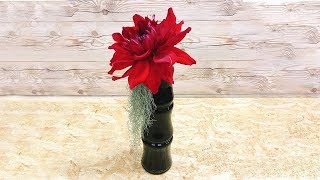 赤いダリアを黒い縦長の花器を使い、大人...