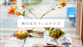 【ハロウィンレシピ】かぼちゃとキバナコスモスで紅葉アレンジ!【親子で一緒】