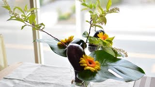 茄子の存在感とガーベラの柔らかい雰囲気...