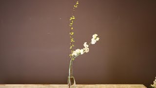 すっと伸びた金葉デマリとスイートピーの...