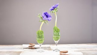 ボトル花瓶が可愛い!アネモネとコデマリのシンプルなアレンジ♪