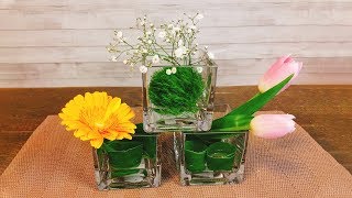 小さな花瓶にお洒落に花を飾る方法🌼ドラセナとアスター| フラワーアレンジ |