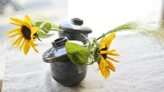 和食のテーブルに合う 茶碗蒸しの器を使ったヒマワリアレンジ